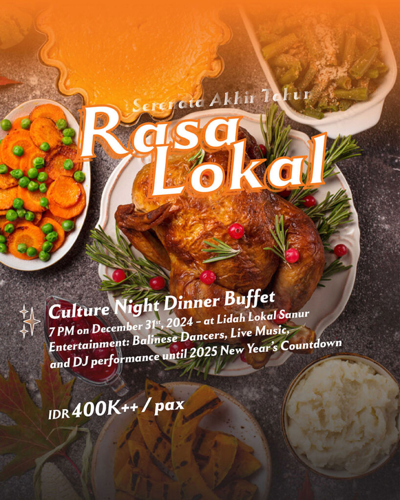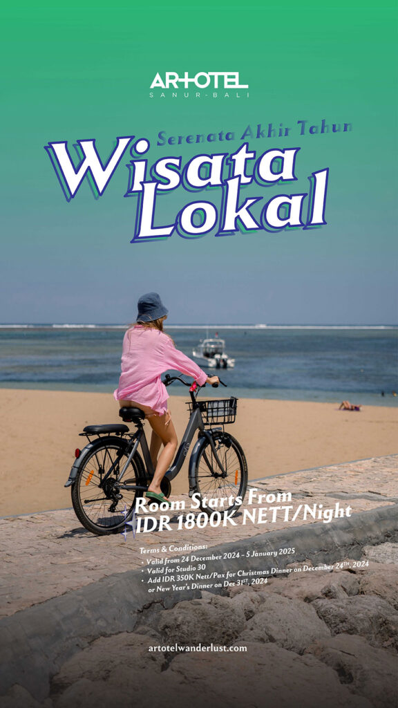 Artotel Sanur Bali pun ikut berpartisipasi dalam program ini dengan menghadirkan serangkain acara berkonsep unik dan menarik yang dibagi menjadi tiga bagian, yaitu Wisata Lokal, Rasa Lokal dan Swara Lokal. Wisata Lokal, promo menginap dengan harga Rp. 1.800.000 net per malam sudah termasuk sarapan pagi dan harga spesial untuk acara makan malam di malam Natal atau Tahun Baru. Untuk Rasa Lokal, makan malam prasmanan dengan harga Rp. 400.000 ++ per orang yang disajikan bersama hiburan Swara Lokal seperti tarian Bali, live music, dan penampilan DJ sampai menjelang Tahun Baru 2025.