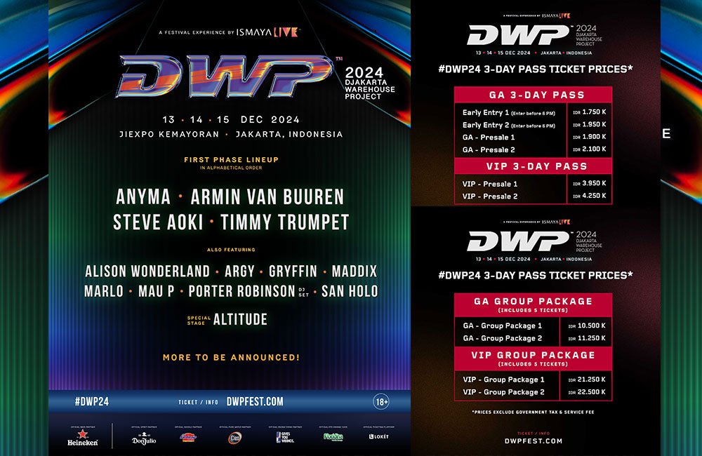 Setelah sukses merayakan edisi anniversary di Bali tahun lalu, Djakarta Warehouse Project (DWP) siap kembali tahun ini dengan edisi spektakuler lainnya. #DWP24 akan diselenggarakan di Jakarta pada tanggal 13, 14, dan 15 Desember 2024. Selama lima belas tahun, DWP telah menjadi inspirasi budaya musik elektronik di Asia Tenggara yang setiap tahunnya selalu memberikan pengalaman musik elektronik yang tak terlupakan bagi para pengunjung.