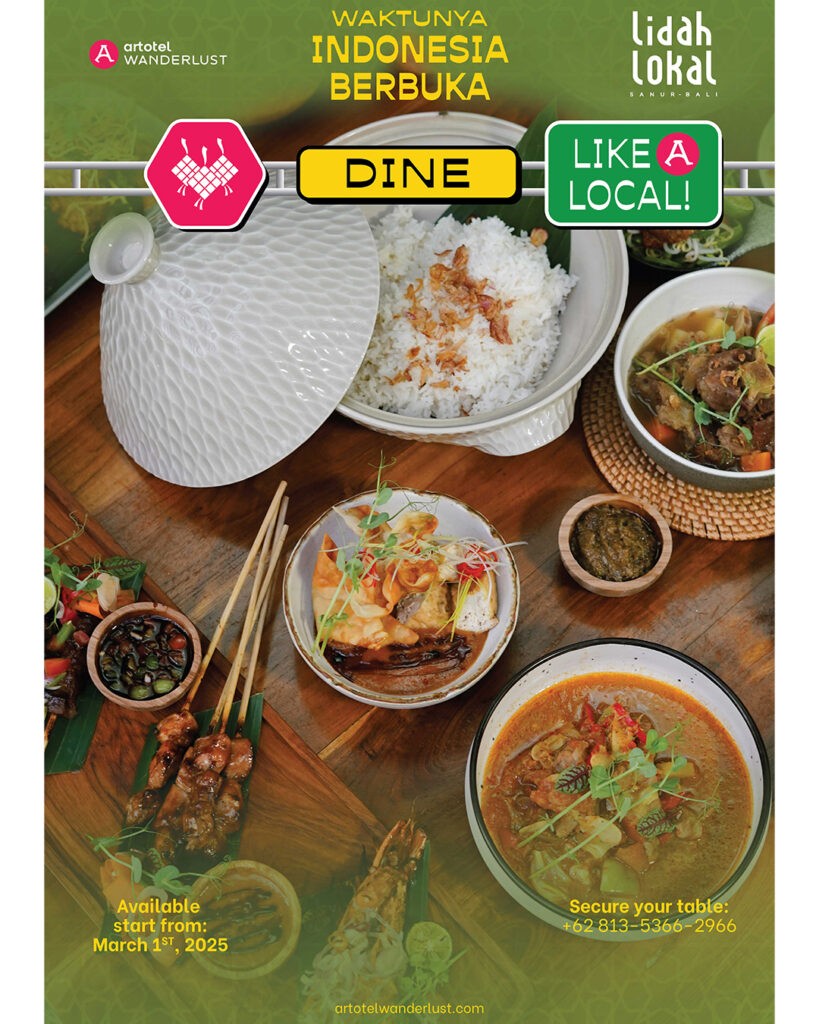 Untuk program F&B, ARTOTEL Sanur – Bali sudah menyiapkan promo Dine Like A Local dengan pilihan sajian sahur, takjil, dan paket berbuka untuk keluarga yang dapat dinikmati di Lidah Lokal Sanur Restoran, dimulai dengan harga Rp. 40,000,-. Pilihan menu sahur antara lain Nasi Goreng Ayam, Mie Goreng Ayam, dan Bubur Ayam. Menu ini dapat dinikmati sepanjang bulan Ramadan mulai pukul 03.00 WITA hingga pukul 06.00 WITA. Menu takjil untuk berbuka puasa antara lain Es Daluman, Mangga Ketan Hitam, Es Timun Markisa, dan Thai Aromatic Teh, yang dapat dinikmati dari pukul 18.30 – 22.30 WITA. Sedangkan untuk sajian buka puasa, kami menghadirkan family style paket untuk 4 pax dengan menu beragam seperti Perkedel Jagung, Bakwan Udang, Sate Ayam, Sate Kambing, Plecing Kangkung, Tumis Toge, dan masih banyak lagi. Penwaran ini dapat dinikmati dengan harga Rp. 600,000,- Untuk informasi dan pemesanan dapat melalui +62 813 5366 2966.