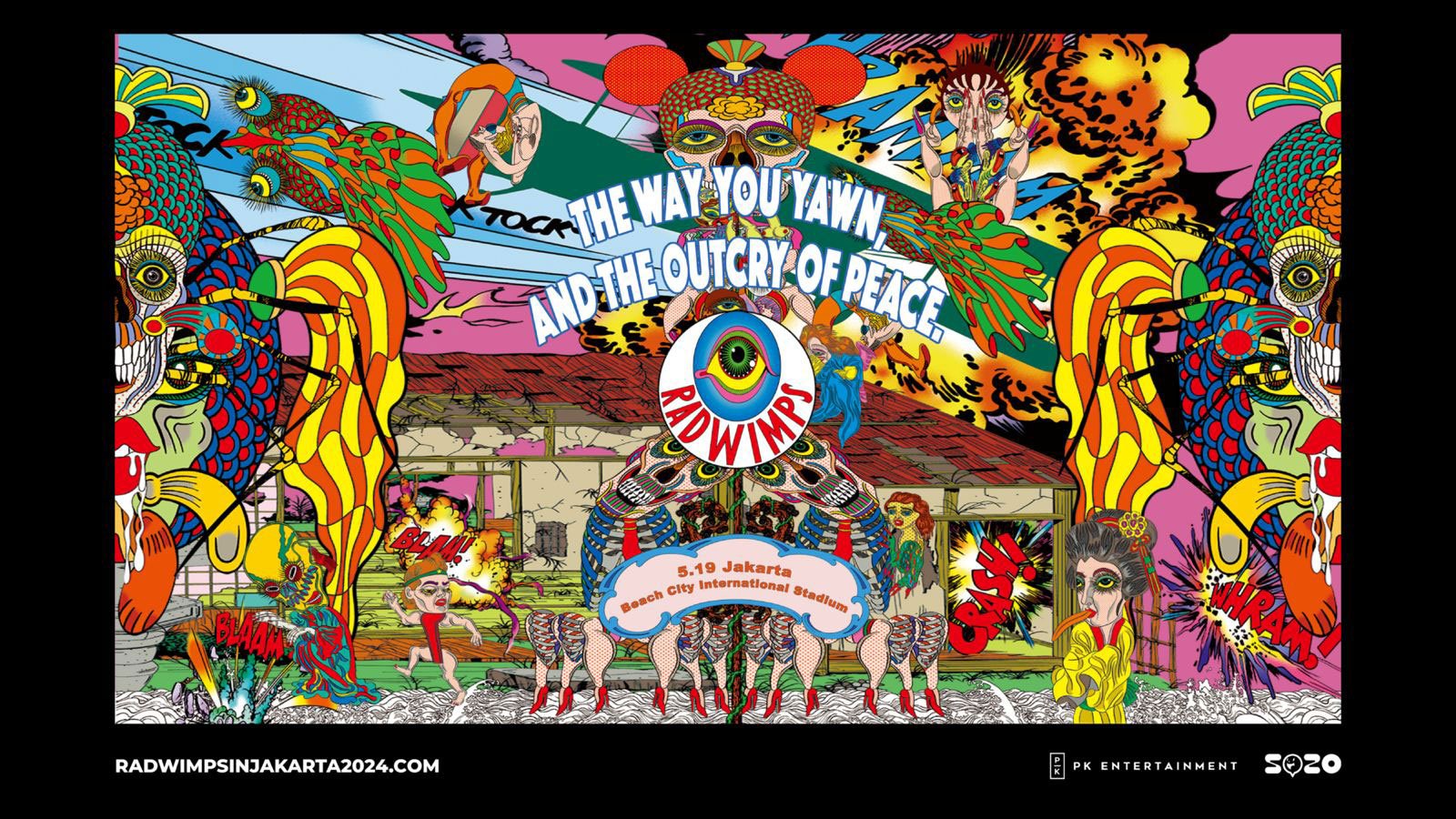 20 Februari 2024 – Jakarta – Setelah sukses menggelar sejumlah konser di berbagai negara di Asia dan juga Australia tahun lalu, band rock asal Jepang, RADWIMPS, hari ini mengumumkan kembalinya mereka ke Indonesia. Mereka siap membawa tur terbaru mereka yang bertajuk ‘The Way You Yawn, and the Outcry of Peace’ ke Jakarta pada hari Minggu, 19 Mei 2024 di Beach City International Stadium, Ancol.