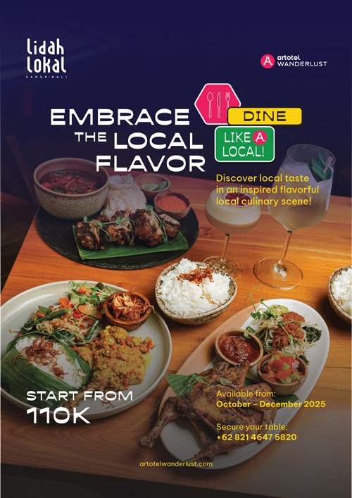Nggak cuma soal staycation, ARTOTEL Sanur juga memanjakan lidah lewat promo kuliner “Dine Like A Local – Embrace the Local Flavor” di restoran Lidah Lokal Sanur. Sepanjang Oktober, kamu bisa nikmati ragam menu khas Indonesia dengan cita rasa autentik dan tampilan modern—seperti Ayam Taliwang, Sop Buntut Goreng, dan Bebek Betutu.