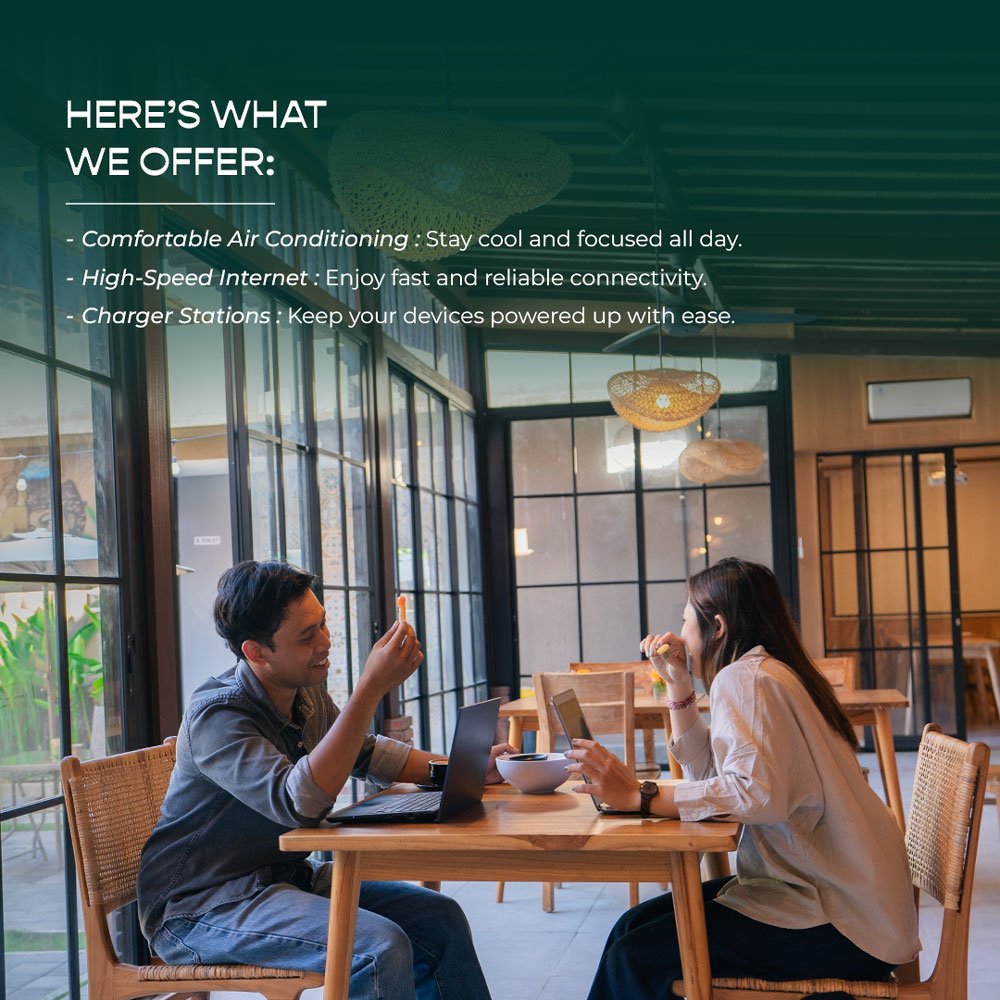 Dengan desain interior modern yang dilengkapi dengan koneksi Wifi yang stabil, ruang meeting, dan area santai, TJ’S Coffee & Co-Working
